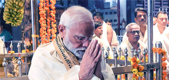 The PM offered prayers at the famous Guruvayur temple and Thriprayar Sree Ramaswami temple in Kerala and sought blessings at the Veerabhadra temple in Lepakshi, Andhra Pradesh. This is a famous Ramayana site where Jatayu got maimed while battling Ravana.
