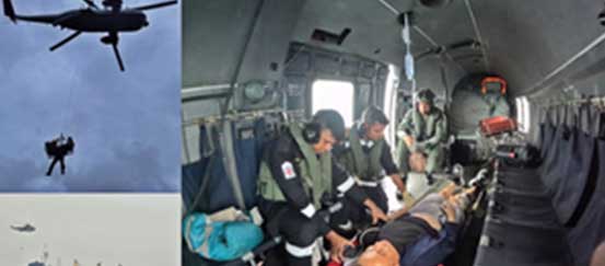 Responding to the medical emergency, a Sea King helicopter was launched from the Indian Navy Air Station Shikra at 0550 hours on July 24.