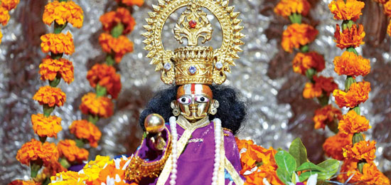 The final step is considered to be the opening of the idol’s eyes. Anjan, or kohl, is put around the deity’s eyes with a gold needle but the process is carried out from behind. It is believed that if one looks into God’s eyes the moment they open, their brilliance can hurt mortals.