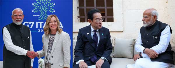 PRIME MINISTER Narendra Modi held a series of bilateral meetings on the sidelines of the G7 Summit at Apulia in Italy on June 14. During his talks with French President Emmanuel Macron, the two leaders discussed ways to further strengthen partnership, including in areas of defence, nuclear, space, education, climate action, digital public infrastructure, critical technologies, connectivity and culture.
