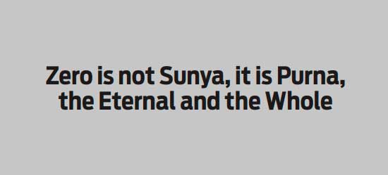 ‘Om purnamadapuanamidam, purnaathpurnamudachyathey; Purnasyapurnamaadhaya purnamevavasidhyathey’, – IshaUpanishad 1.0 The above proclamation of the Vedic Rishis clearly ordains, that all that we have around us, here and even beyond in the cosmos is the manifestation of Purna, the Whole and the Eternal. It functions within the broad consciousness of being purna, to manifest its innate potential and having lived its finite life ultimately goes back to purna, the whole from where it originated. For the Vedic Rishis the numerals one to nine and Zero, were a means to connect seamlessly with this purna, the eternal and the whole and to comprehend this vast creation is all about.